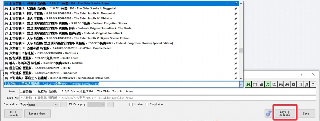 再用插件進行遊戲名自定義重命名,並補充一些必要信息,讓同一個類型、同一個系列的遊戲可以按我希望的方式,進行分類以及順序在庫裏進行排列呈現。