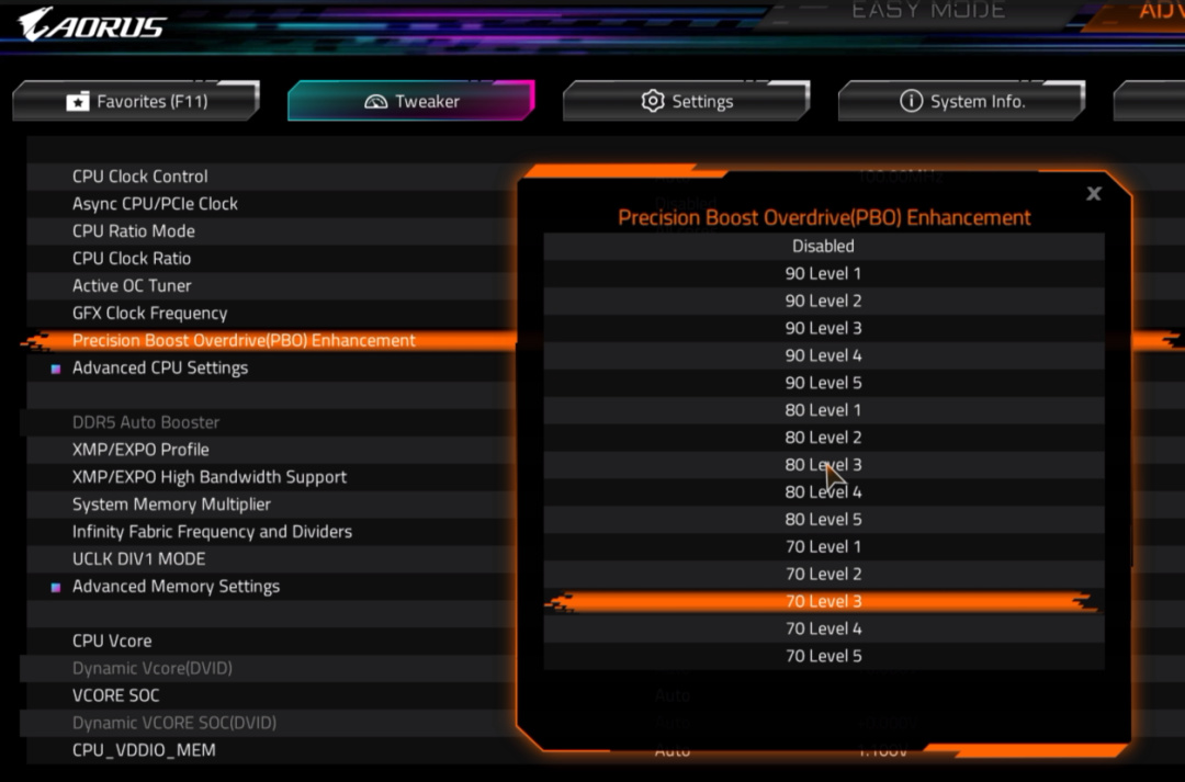 ▲如果不太懂PBO的設置,也可以選擇主板BIOS中預設的PBO增強模式,一鍵提升性能