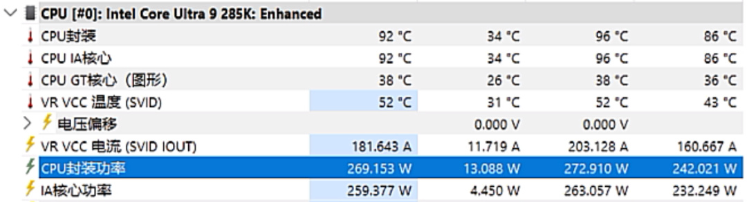 此外,功耗部分,雖說酷睿Ultra 200S確實相對上代大幅提升了能效,降低了功率,但從實測來看,酷睿Ultra 9 285K的滿載功率依然要到270W水平,比銳龍5 9600X高了大約142W。雖說遊戲中並不一定會達到滿載功率狀態,但對於裝機用戶來說顯然是要根據滿載狀態下的需求來決定買多大功率電源和多高檔次散熱器的,所以從這一點來講酷睿Ultra 9 285K的裝機預算還是要高不少。