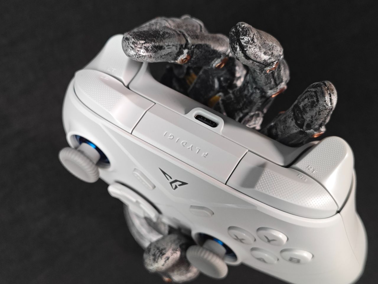 手柄的肩键为机械按键,按压清脆,手感一致性很好。扳机为精度很高的霍尔线性扳机,肩键及扳机上均做有防滑点阵,比冰原狼2的防滑纹更深,能提供更加出色的防滑性能,不过也会比较容易刮泥。