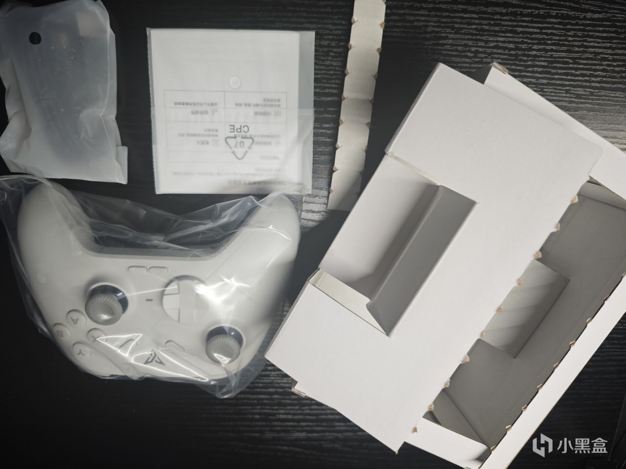 飞智经典的黑色外包装,打开外包装后,跟以往不一样的是,用纸壳固定好了手柄。