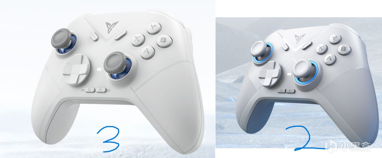 由于冰原狼这个手柄的定位在是中端手柄,并且升级的配置不能超过黑武士4PRO,那么这次升级的重点应该在摇杆。冰原狼二代和三代的对比省流: