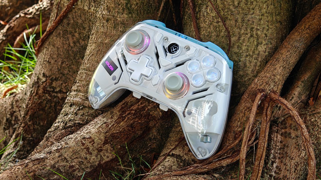 澳加獅在十款當中是唯一一個附帶智能底座的手柄,並且有炫彩 RGB 燈效可調節,整體外觀比較科技炫酷。