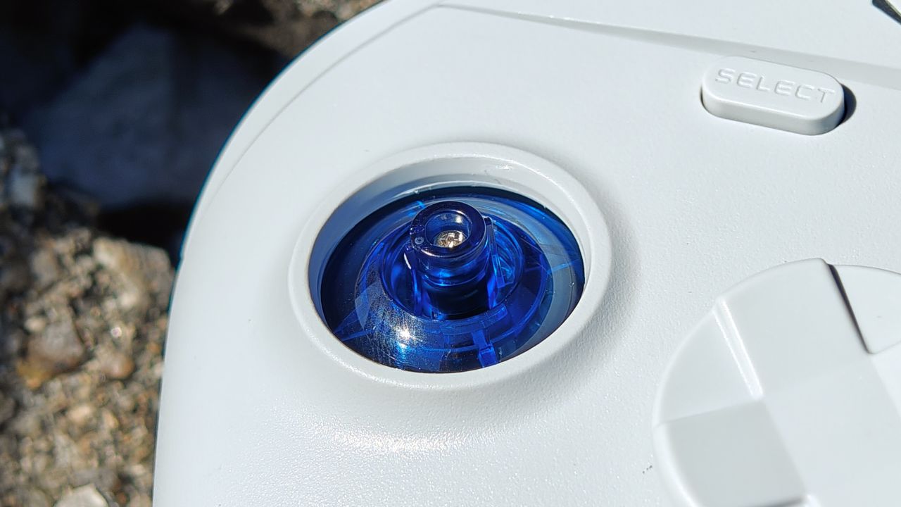 手柄搖桿外圈設有 pom 環,搖桿也自帶鐵圈,操作體驗絲滑。