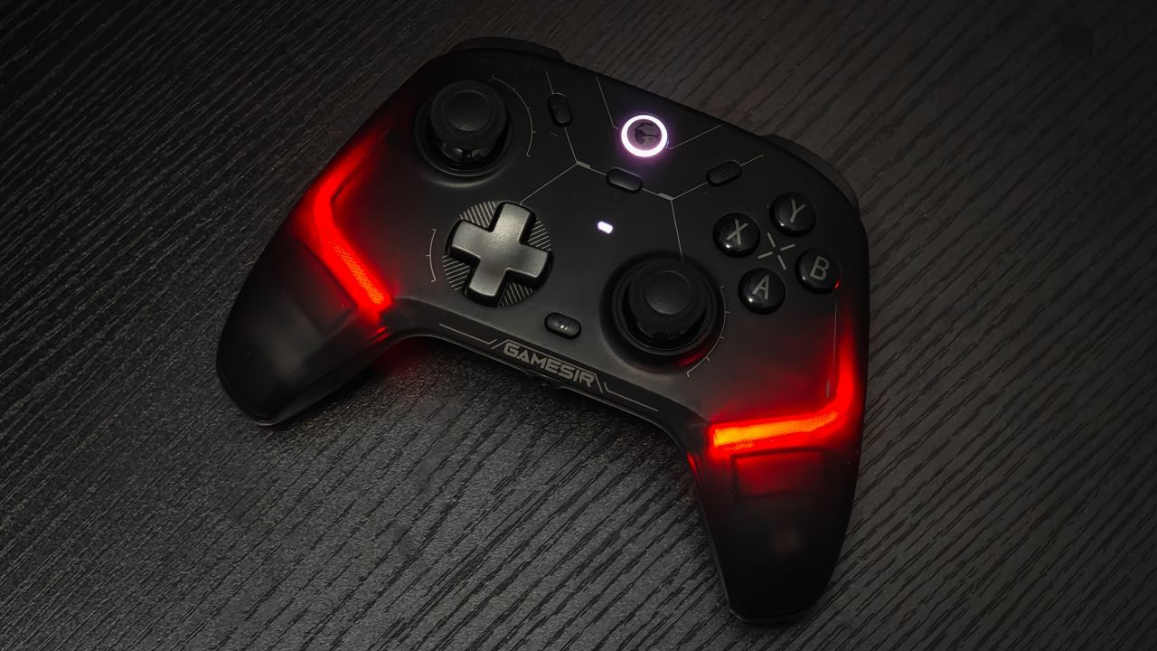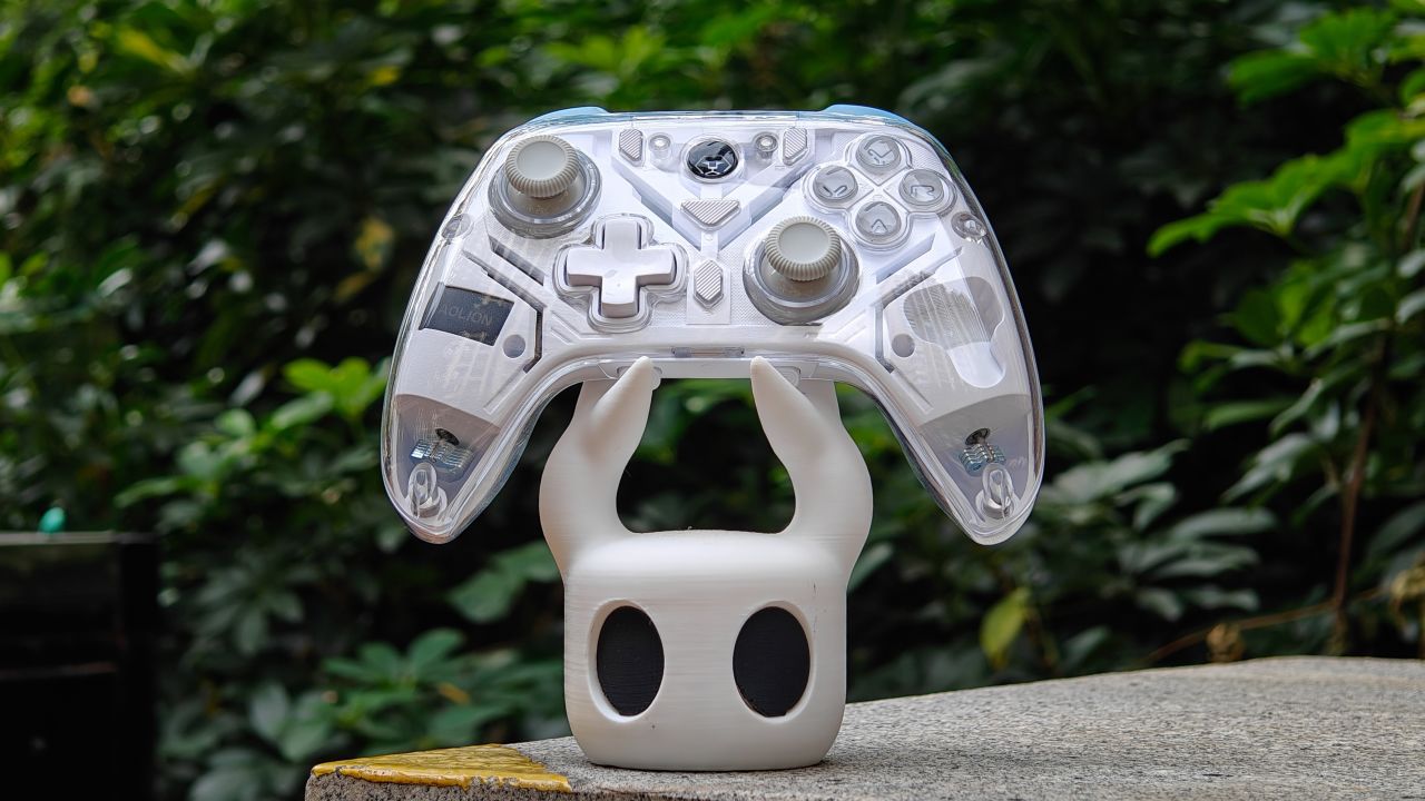 手柄採用了透明磁吸殼設計,還有炫彩的 RGB 燈效,且標配智能充電底座,底座自帶一個 USB 接口。