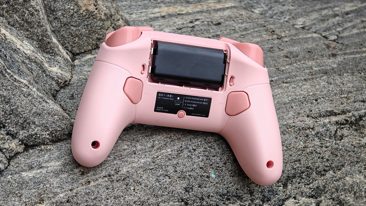 手柄背面握把處與肩鍵扳機均有防滑紋路設計,背面設有模式切換撥片,跟兩顆自定義背鍵,鯤鵬20還有無線充電接口,可以另購智能充電底座。