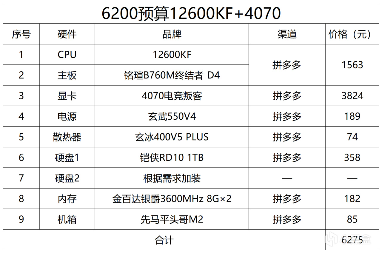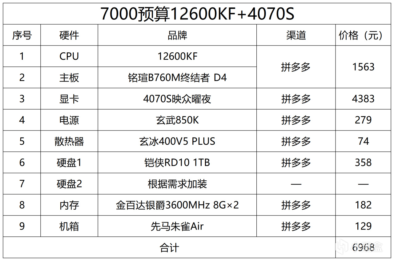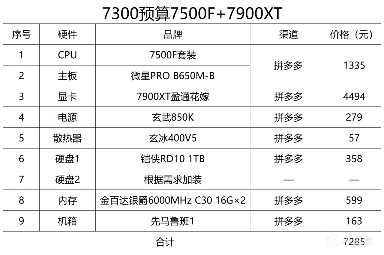 1.購買渠道可以根據個人消費渠道自選,配置單以拼多多爲標準,價格爲我當天實際能下單的價格。