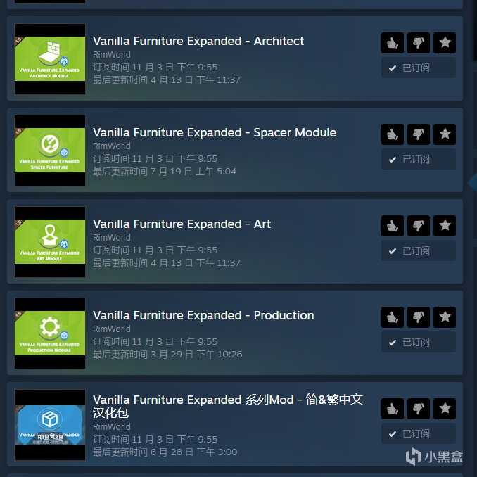 我标题写的汉化包是因为汉化mod里可以一键订阅所有,这个系列mod是原版拓展家具,让你的室内不再空荡荡~