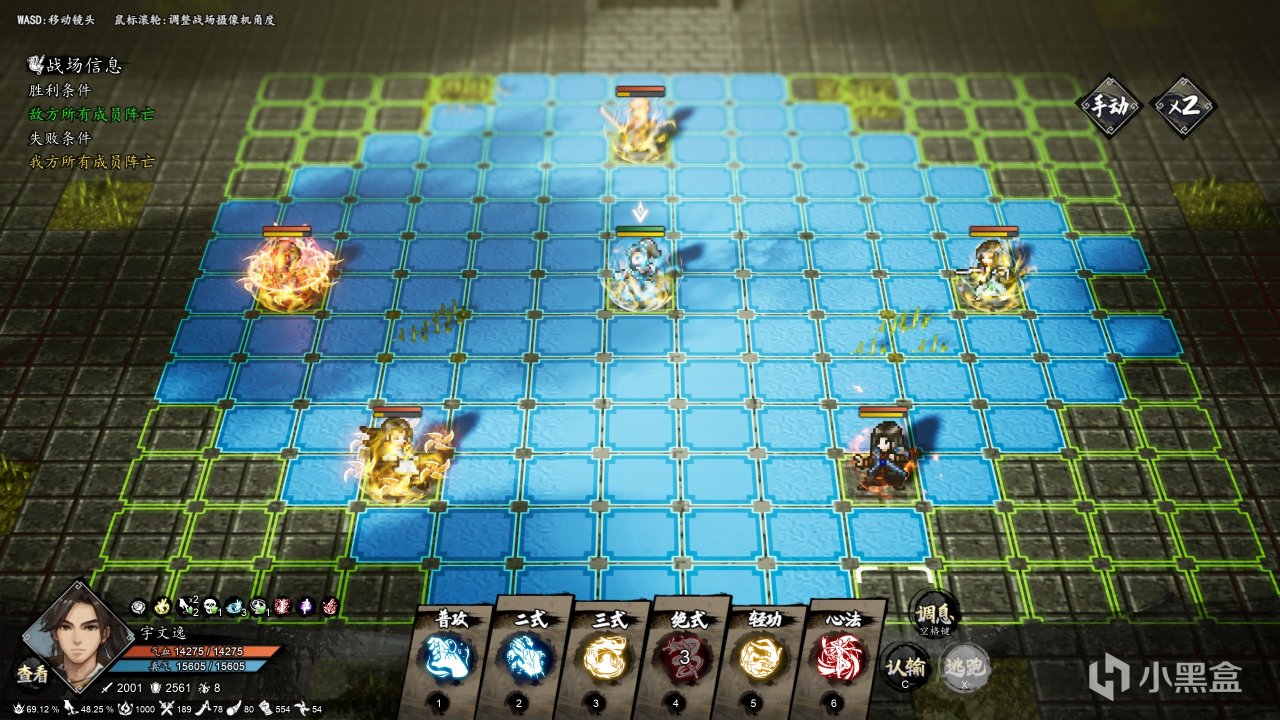 戰鬥方面,本作就是標準的走格子戰旗,玩家的技能被分爲一式,二式,三式,四式,輕功,心法六種招式,每種分別可以裝備四個且隨時切換。再配合上本作數量極多的武功心法和各種裝備,讓遊戲的養成和構築部分非常有樂趣。