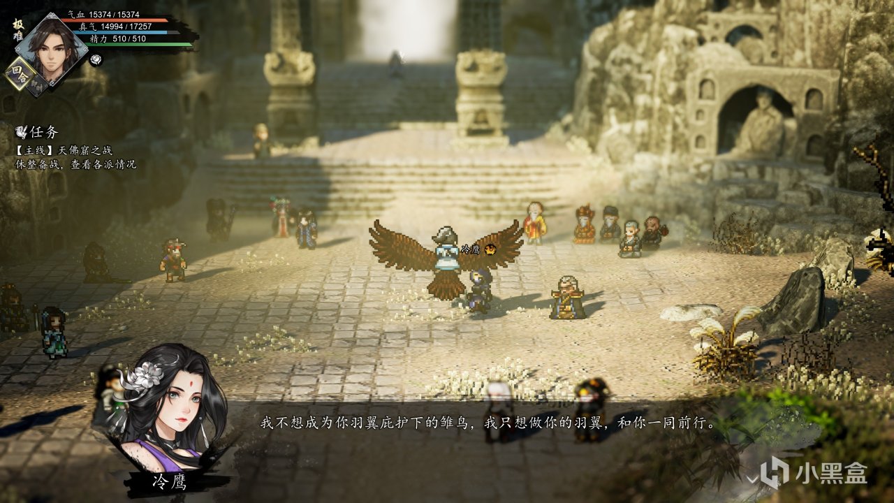 論質量,本作已經做到了近幾年的武俠遊戲之最。論態度,本作去年首發之時就已經相對完整,且經過一年內兩次大型劇情更新,本作的完成度和體量已經相當龐大,不像某些遊戲劇情做一半直接跑路。論誠意,本作基本所有的任務都有多條分支且有很多隱藏的劇情和後續,這些細節和後續也許並不會被玩家注意,但是本作依舊花了相當大的功夫完善了這些。論劇情,本作在保證劇情精彩的同時也沒有整啥逆天情節,不像某些遊戲總是喜歡加點奇怪的癖好。論賣相,hd2d的風格絲毫不遜於八方旅人等作品,遊戲的演出也是相當密集。論可玩性,本作的功法數量龐大,構築樂趣極高,即時制和回合制的雙重應用也讓戰鬥充滿了策略性與變數。