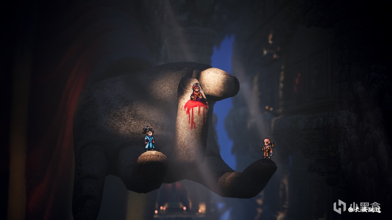 畫面方面,儘管hd2d如今已經不再新鮮,但是整體看下來依舊非常驚豔,場景的構建極其出色,尤其是天佛窟真的讓人印象深刻,除此之外人物的立繪也很不錯(不過本作的角色立繪是ai改的,雖然我沒看出來)。