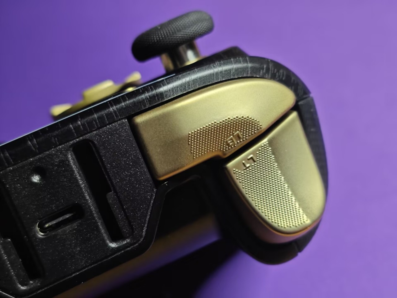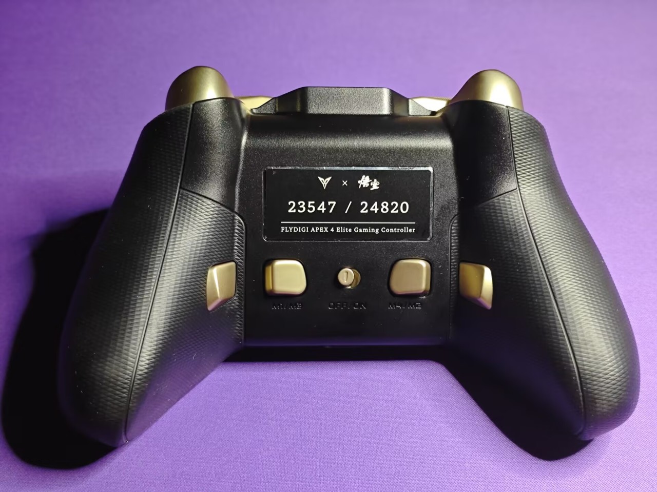 手柄背面则是手柄开关和四个背键,大家可以根据自己的习惯进行按键隐射,还有握把处的防滑纹路等,因为是限量款,而且到手比较晚,所以背后的编号比较靠后,可惜不是什么“靓号”,不然收藏意义会更大!