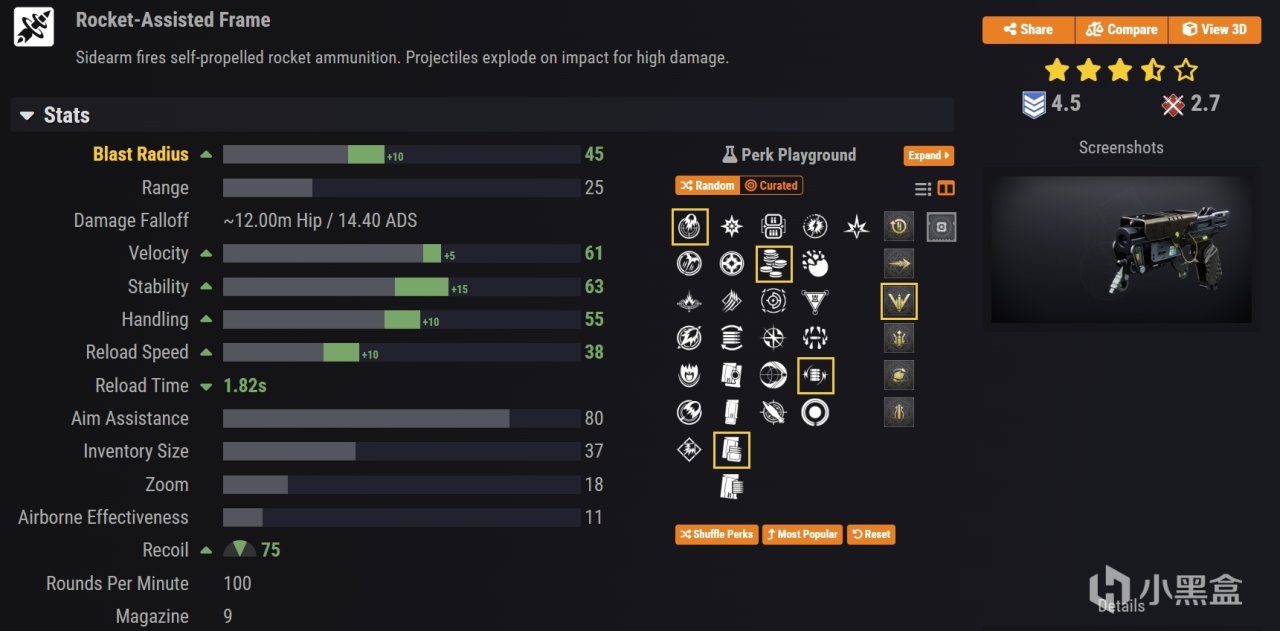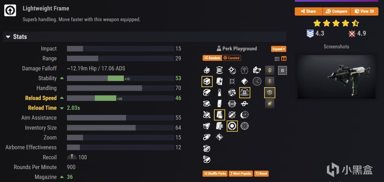 其他武器PERK給的多少有點差強人意:玫瑰操控給的很高,射程差點;多機系統PERK池中3號本身差點,給的已經是最號的組合了;羅盤玫瑰給的不是太強,不如花園鍛造霰彈槍;熱血上頭給的組合適合日落推圖,不適合輸出。