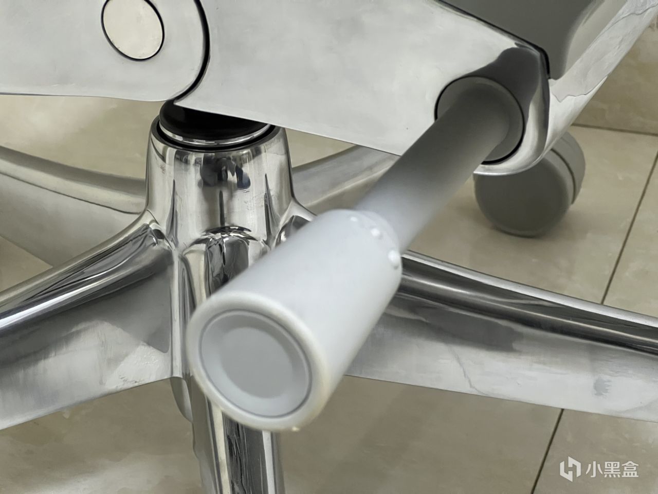 然后就是椅子的这个液压杆了,整体是一个进口品牌4级的防爆气压棒,说实话我为什么这么久一直都没有买人体工学椅,这个气压杆也是我一直以来比较担心的一个点,毕竟实在是看到过太多气压椅爆杆然后菊花残的视频了,导致我一直都对这个东西有点怕怕的。