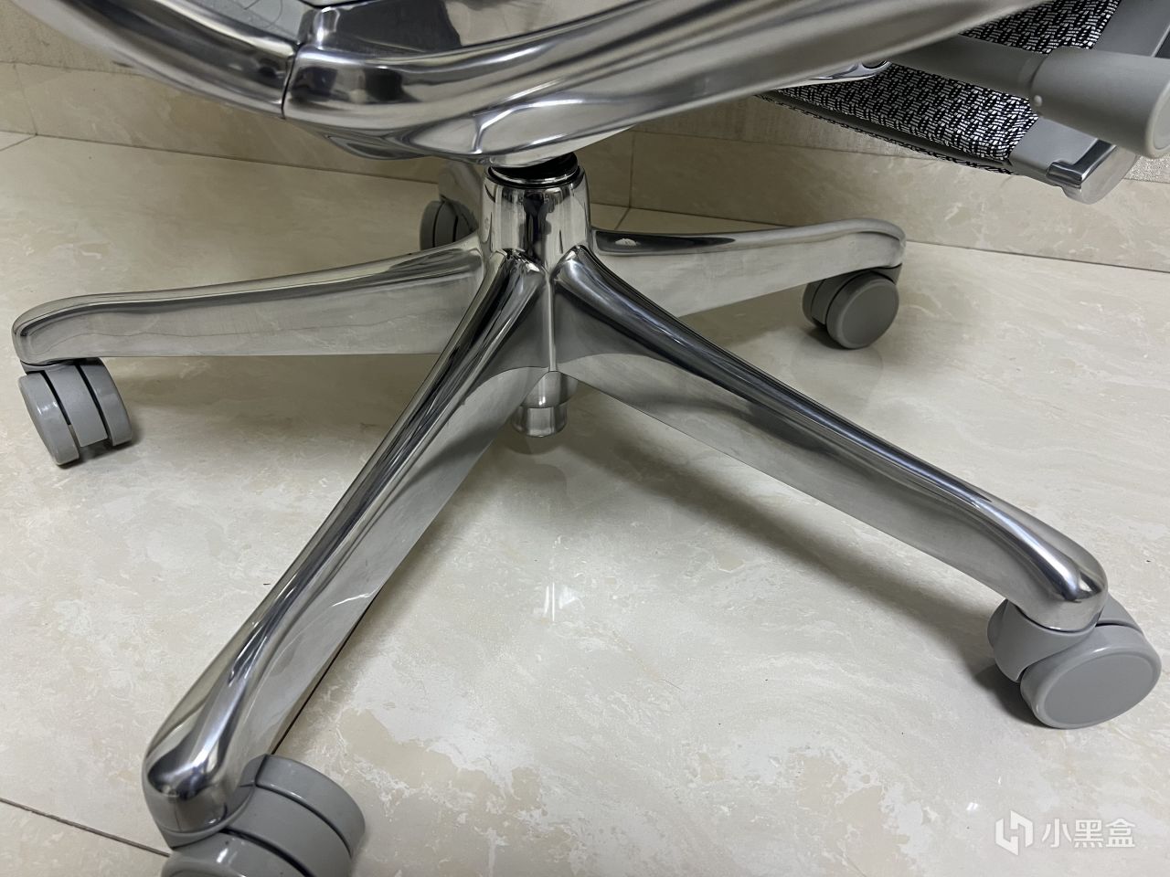 最后就是椅子的这个一体式铝合金椅脚和静音PU滑轮了,铝合金椅脚自然不必说,主打一个结实耐造,更别说还是一体式的了,基本上随便你怎么样都不可能坏的了,搭配上这个静音PU滑轮,椅子滑动起来不会发出半点声音,也不会对地板造成伤害,非常的不错。