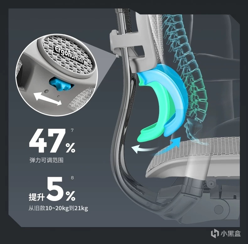 而且为了照顾不同体重的用户,防止小体重无法将椅子靠下去,大体重无法让椅子弹起来,