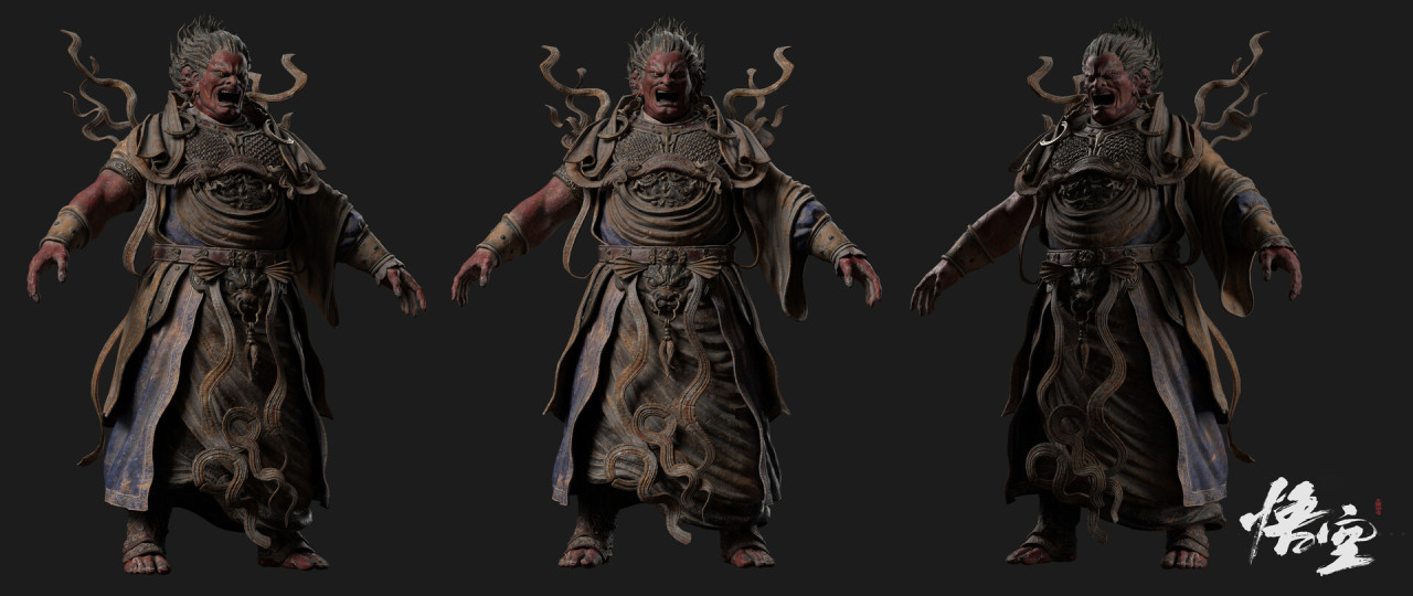 今日,3D設計師Huan gug在artstation個人賬號上更新了一波《黑神話:悟空》角色建模圖。