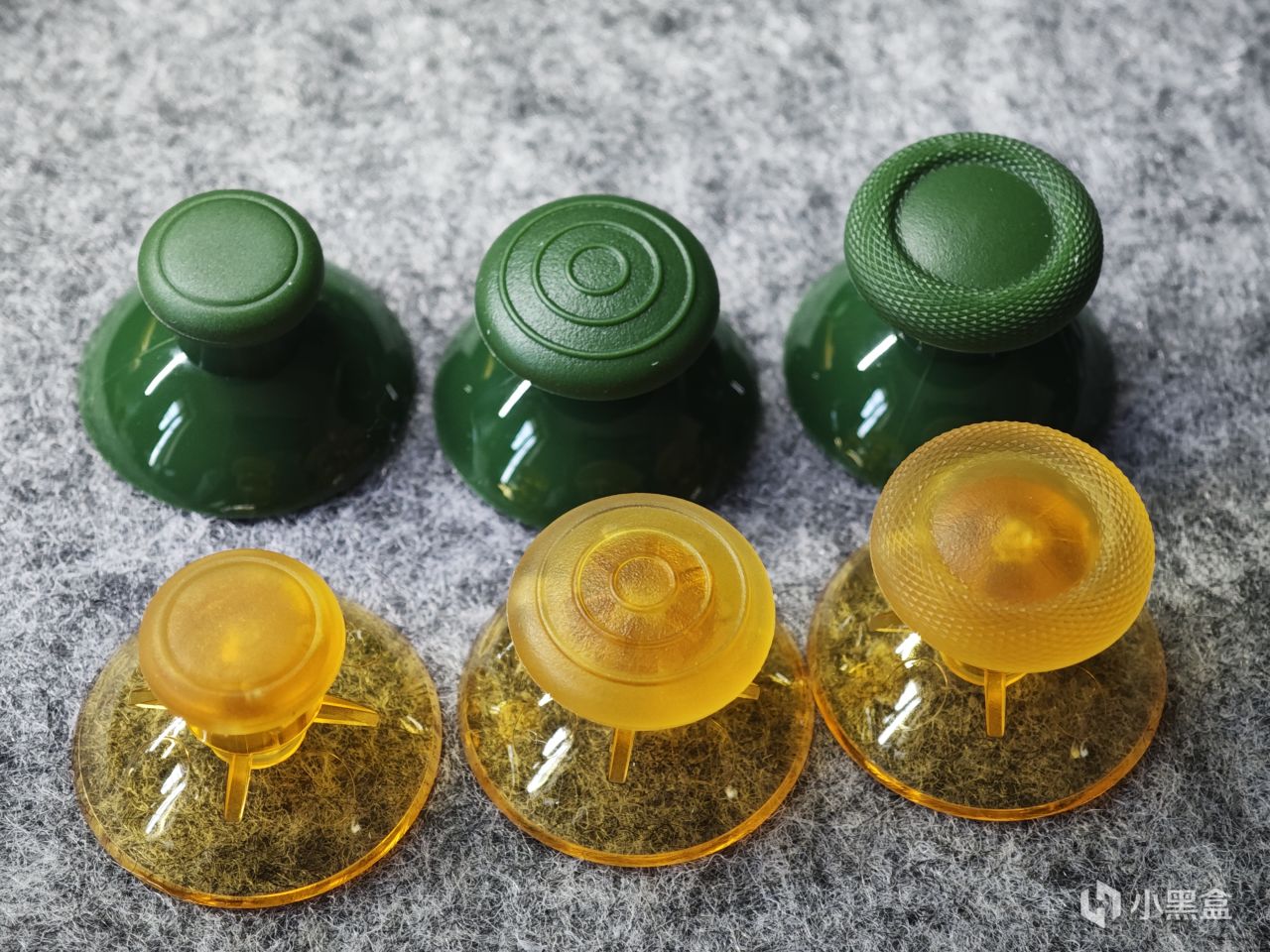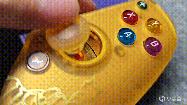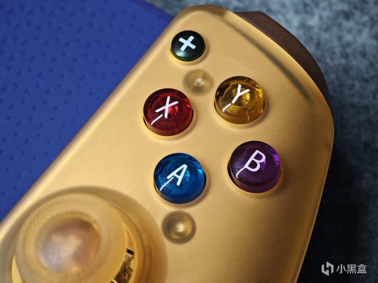 ABXY是导电胶按键,XBOX布局,表面是水晶材质,灭霸这款按键跟无限手套上面的宝石一样。ABXY按键支持磁吸互换,可以切换switch布局。