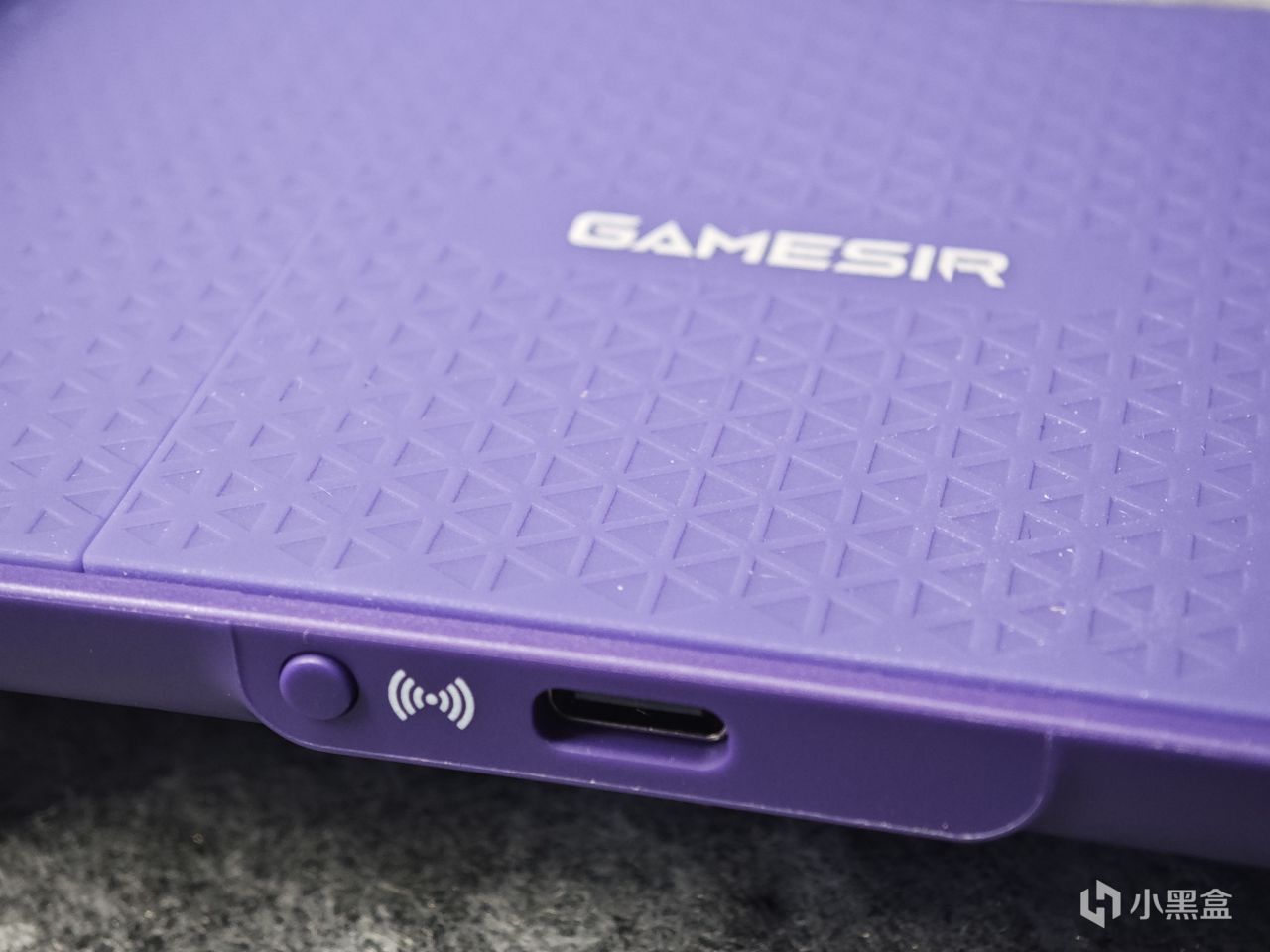 手柄的底部是连接按键和TYPEC充电口,支持switch、PC、安卓、iOS、鸿蒙、云游戏、串流、映射游玩。支持六轴陀螺仪,原生支持switch体感操控,也支持一键唤醒。