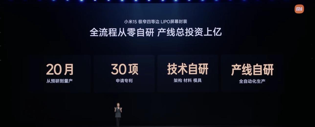 爲了追求極窄邊框,小米付出了極大成本,投入上億自研產線,申請了30項專利,從預研到量產耗時20個月,在此期間,小米工程師團隊從架構到材料再到模具,全流程從零自研。