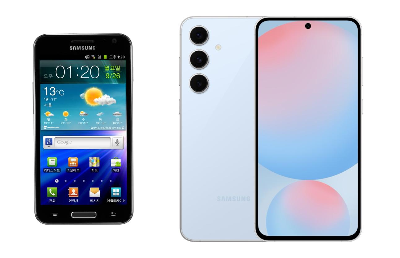 Galaxy S1的「寬額頭」和「大下巴」,外加兩側的大黑邊,會給人一種「廉價」感,不像Galaxy S24看起來那麼精緻。