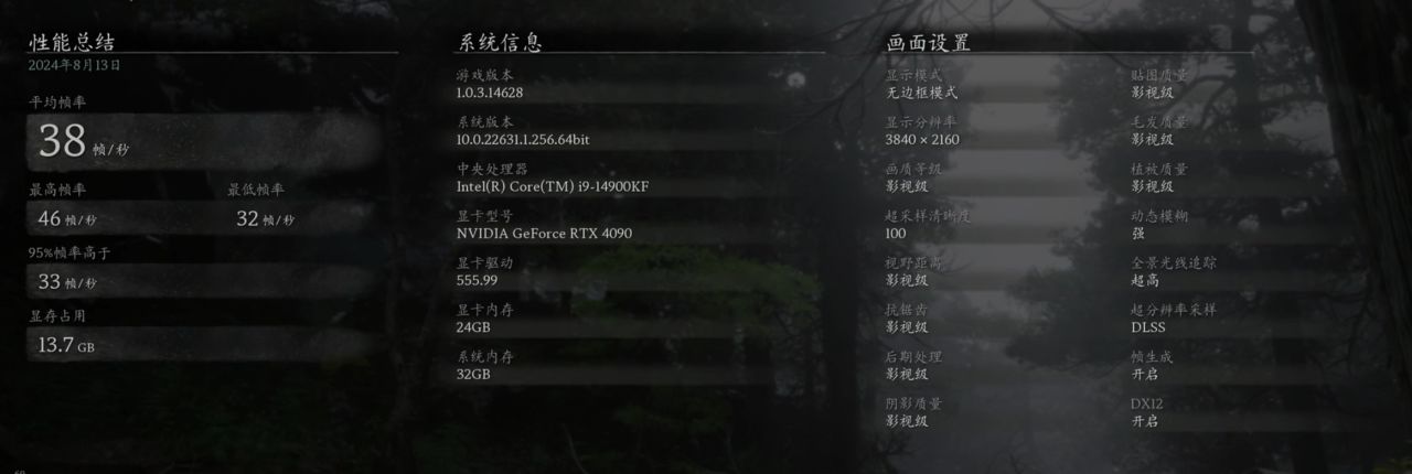 黑神话4K分辨率 i9 14900KF+RTX 4090