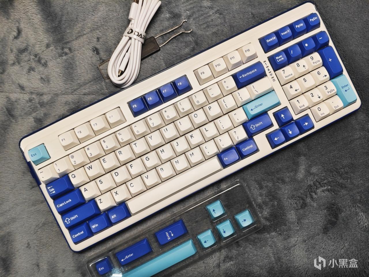 海洋主题拼接色元素设计的机械键盘,支持三模连接(蓝牙、C口有线、2.4G,全文下同),80配列88键布局。