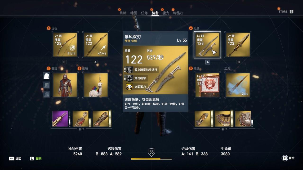 《刺客信条:起源》在很大程度上减少了现代故事线的描述,也去掉了很多以往作品中的追逐场景。不过,玩家在本作中拥有多种武器选择,如近距离的剑、刀、长矛、槌、斧头、双刀,以及远距离的弓箭,甚至还有类似狙击能力的掠食者弓和能一次性射出大量箭矢的战士弓。此外,还可以使用火药弹、昏迷标、烟雾弹等工具,提供了多样化的战斗方式。