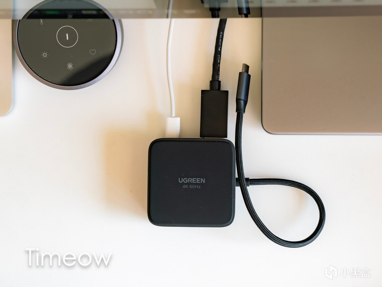 用的時候,只需要插到設備的USB-C口、將顯示器的HDMI線連到擴展塢上就行。