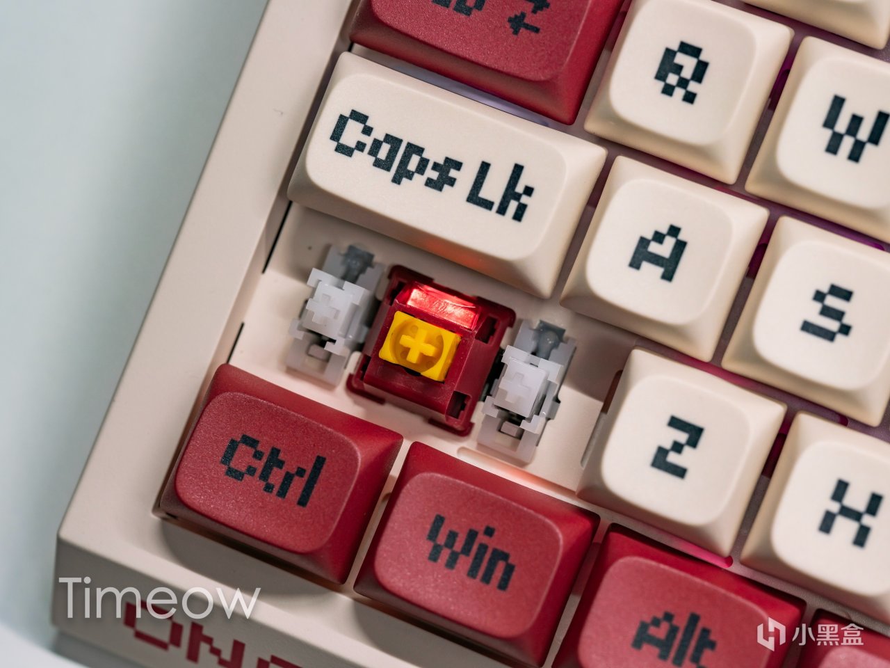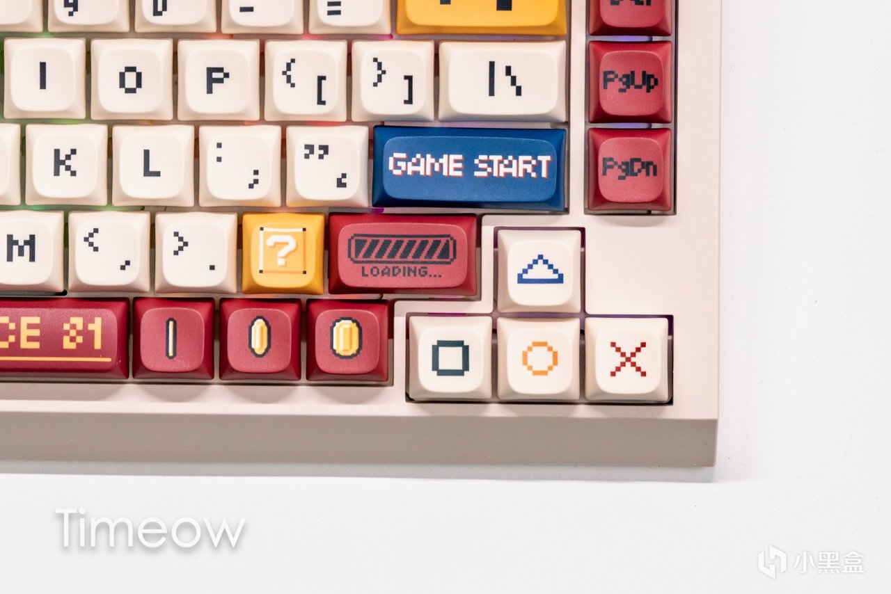 印有像素字體的按鍵,表面質感也很棒,PBT材質觸感細膩且不容易打油,撫摸黨狂喜。