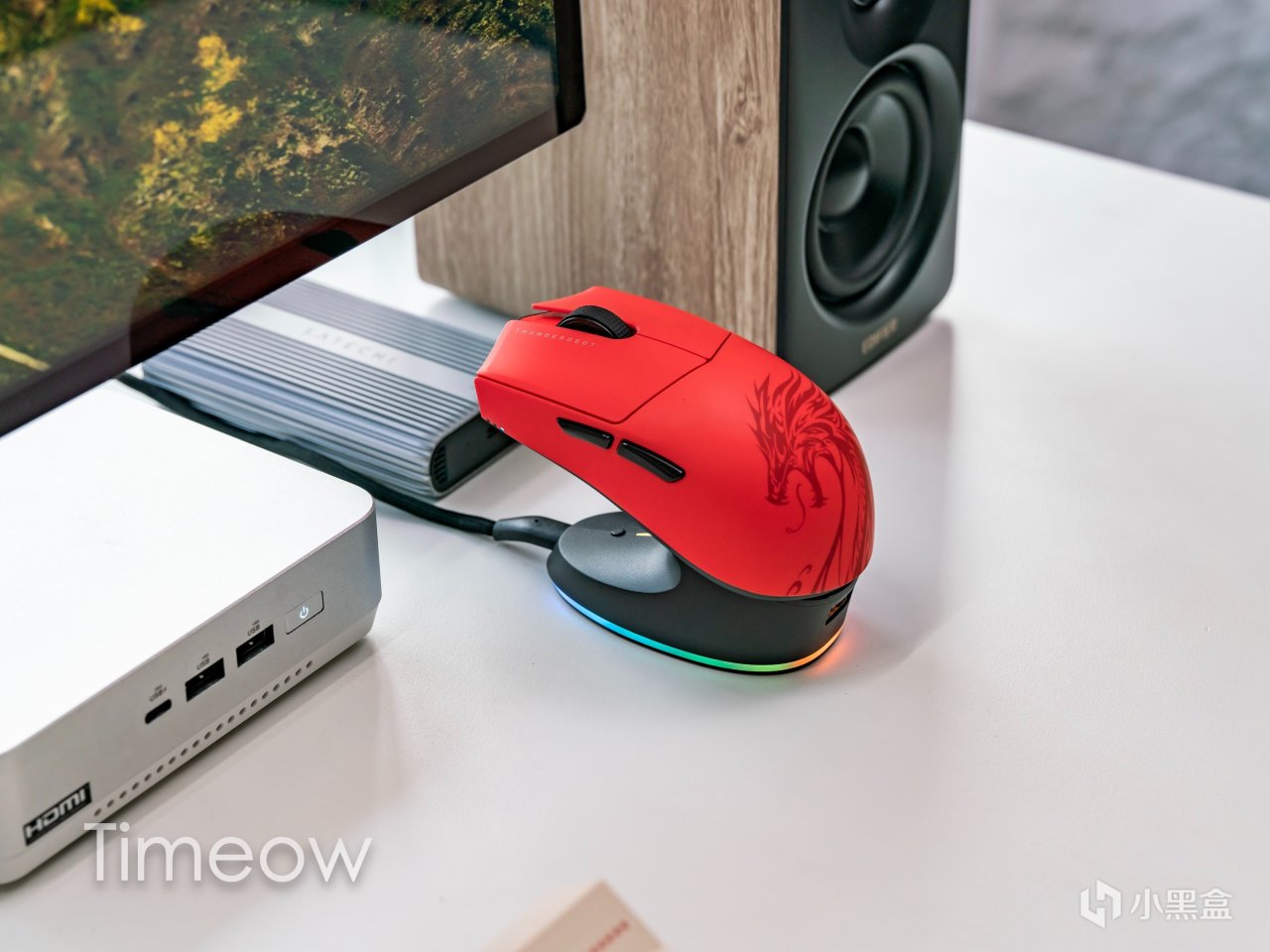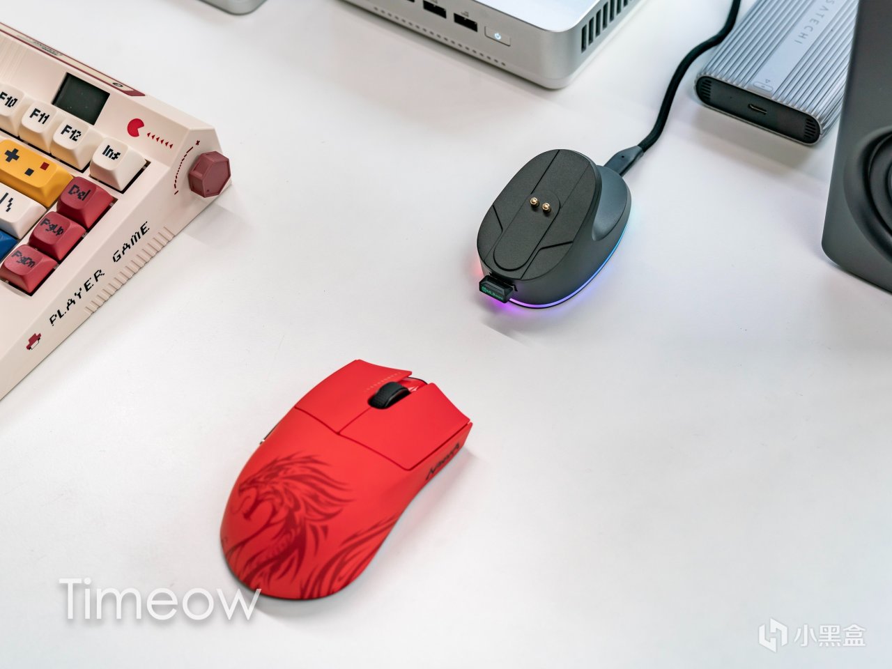 對了,這個底座不僅可以減少接收器和鼠標的距離、減少延遲,更能實現磁吸充電,輕輕一放,這不比插線方便?