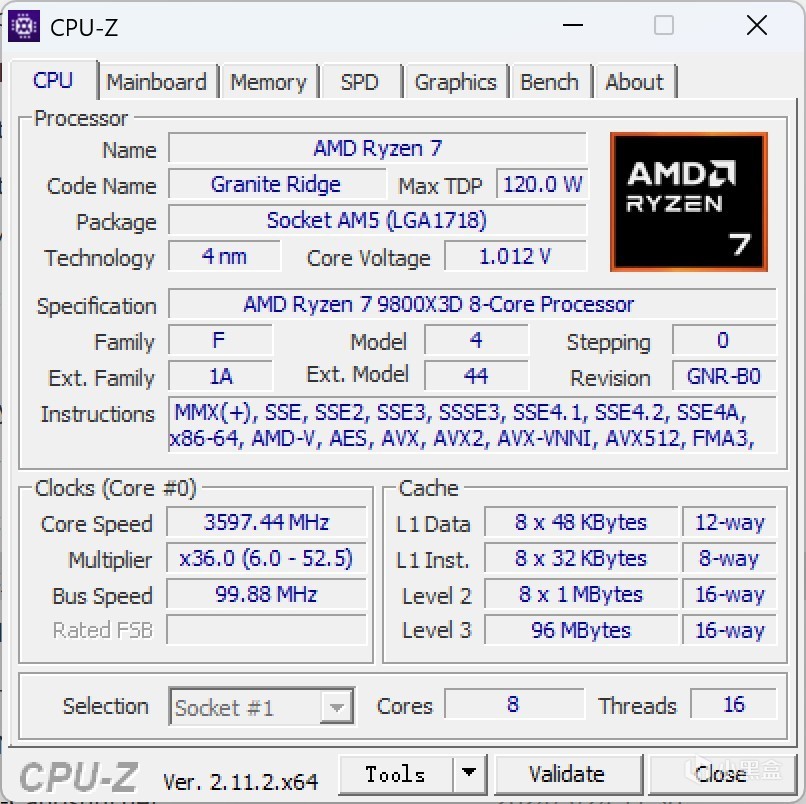 首先还是验明正身:9800X3D默认情况下最高单核可以到5.25GHz,这代还解锁了PBO,也就是说通过PBO还能加一点频率,不过个人不建议超频X3D CPU,毕竟X3D就不是靠频率打赢的,加的那点频率还影响稳定,得不偿失。