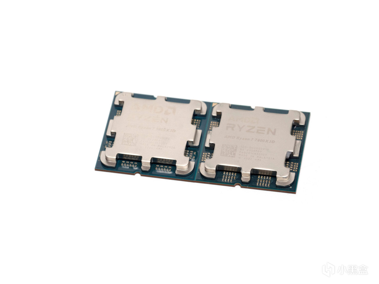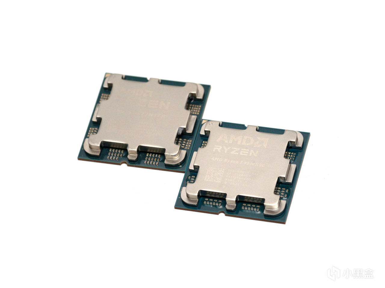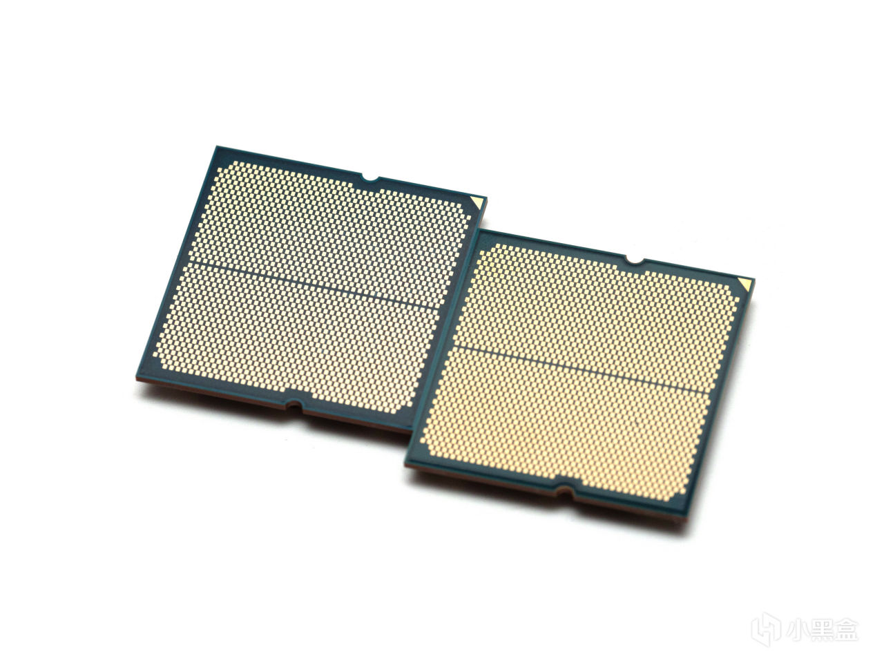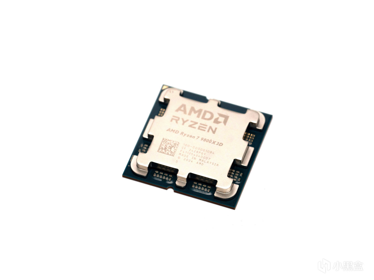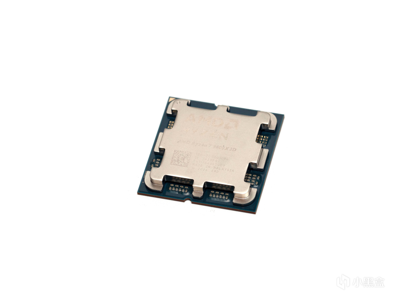 CPU本身没啥变化,因为还是AM5接口,咋一看和上代7800X3D几乎一模一样,不过正面的电容排布稍微有点了点调整,9800X3D多了一排,很好认。
