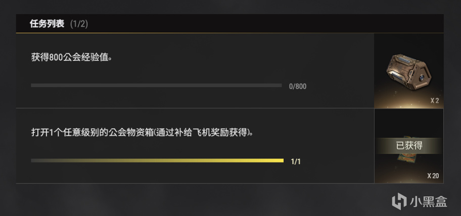 打開1個任意級別的公會物資箱(通過補給飛機獎勵獲得),之前獲得的現在打開也算完成。