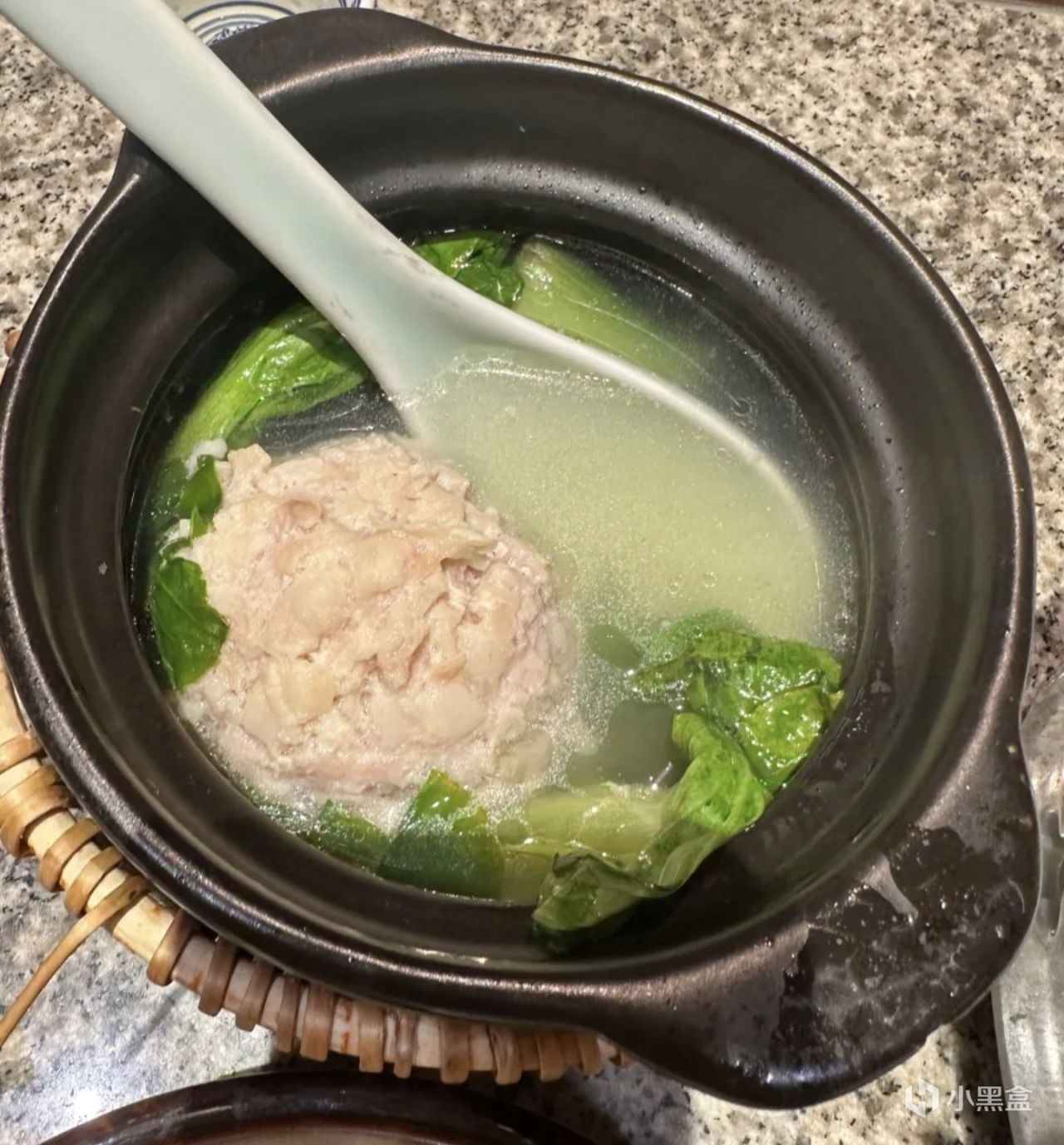 因爲獅子頭做的太鬆軟了,如果不用勺子去舀着喫而是用筷子的話,估計沒兩下獅子頭的肉就全散開在湯裏了
