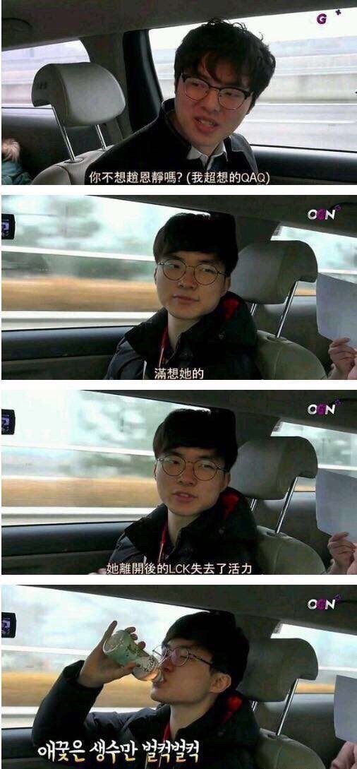 2018年OGN紀錄片當中,當主持人問faker想恩靜嗎?Faker表示想念恩靜了,還說沒有恩靜的LCK失去了活力。