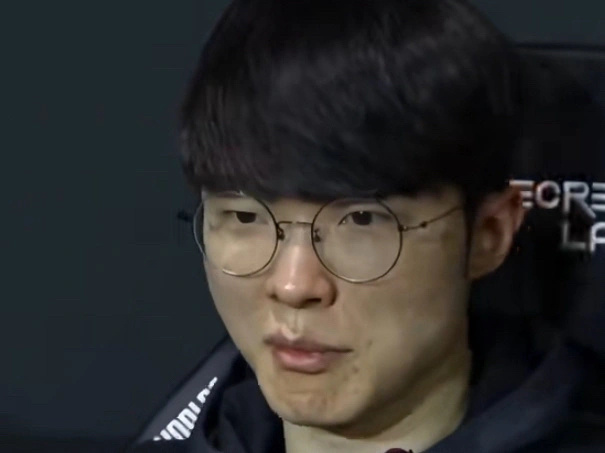 這是在S13世界賽的時候,T1打贏LNG後,導播切到faker的視角時,這憋笑的表情就被捕作到了。