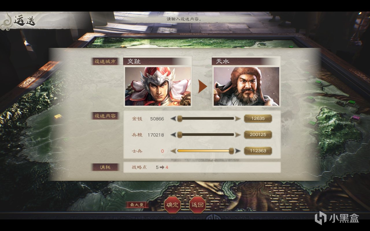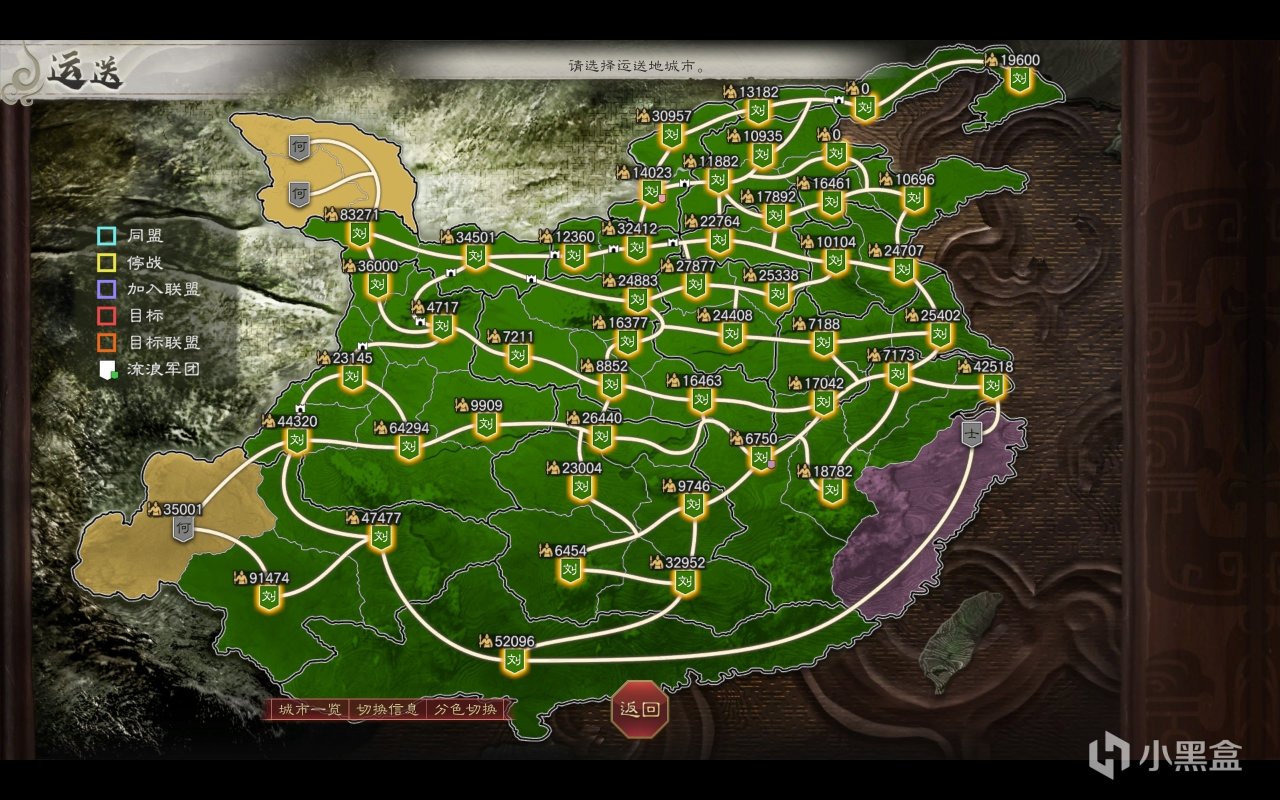 这让战略行动变得像吃屎一样难受,而且你可能会注意我有提到一个「运送」设计——是的,这代玩家可以“超时空调兵”,玩家在单个回合内可以自由将后方的兵力运到前方(当然AI也可以),这算是些微弥补了武将与兵种不能集体行动的缺陷,但一方面这个设计在逻辑上很幽默,另一方面也让城市布兵变得儿戏,对于一些后方城池,你完全可以设置0兵0将,反正也不会遭到敌人攻击(而在《全战三国》中,如果缺乏军队镇压,城市则会叛乱)。