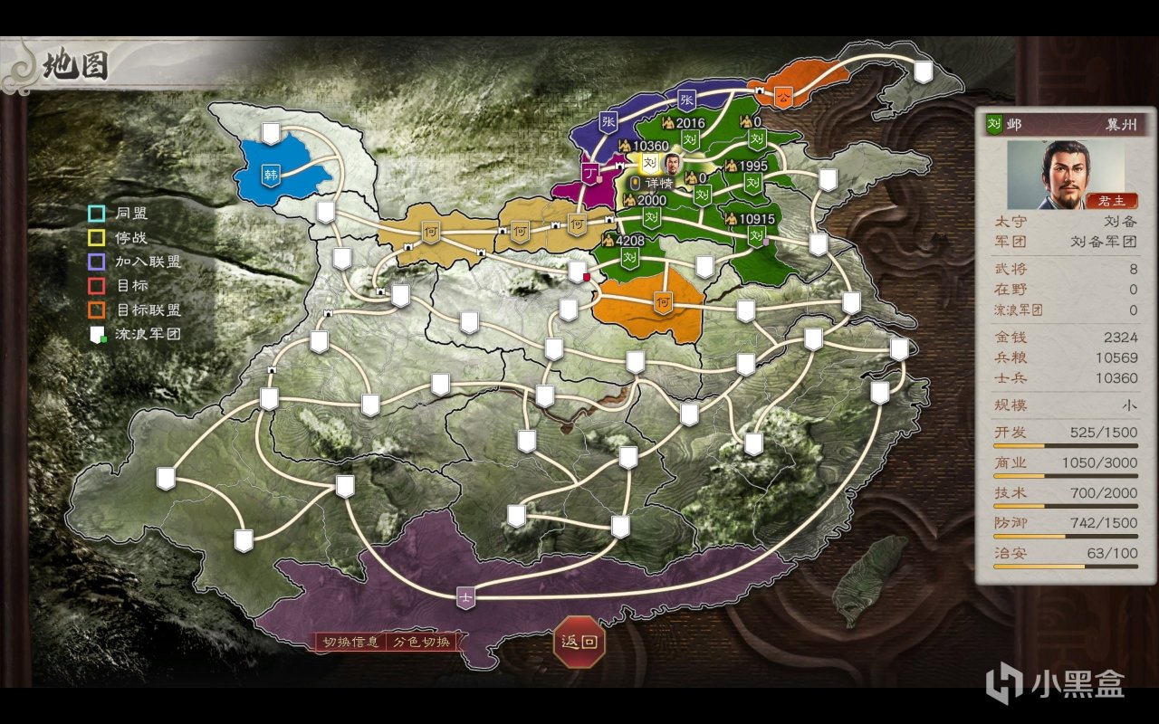 武将、部队分开行动!其战斗的逻辑是「城里有军队、有武将」,也就是说假如你派某支队伍打下了一座城,那武将就带着兵来到这座城里,如果这座城与地方接壤你可以庆幸无事发生,要是不与敌方接壤则变成了一座“和平城”,你得先把自己的十万大军“运到”前线,然后再多花一个战略点把武将派过去!