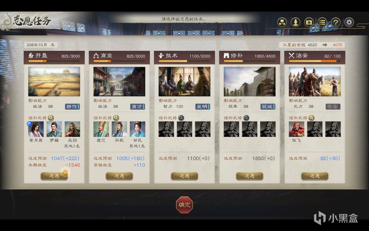 你在游戏里每回合只有130点行动力,而任一行动都需要至少消耗20点,也就是说一个回合只能进行六项行动,玩起来简直是在寸止挑战——先别急着骂,之后「军事」还会给你憋个大的。