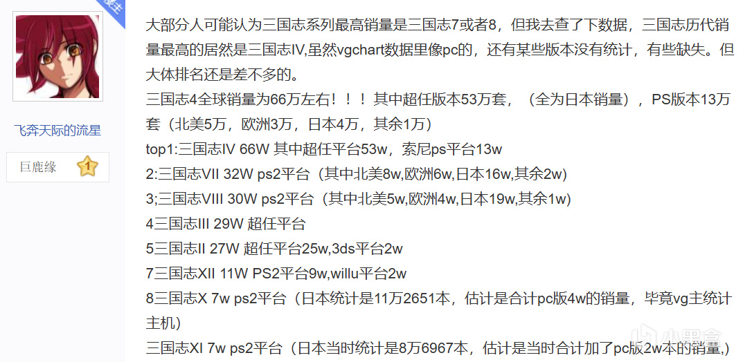 这其实能够说明一些问题,也许它们的确不堪,但也不是全无优点,至少粉丝们是善于自己去发现闪光点的,也许这就是传说中的「IP影响力」吧,毕竟二者的历史都相当悠久,《三国志》系列更是一个横跨三十年的长线IP,可惜的是除了长寿以外也没啥优点,没有一作销量破百万。