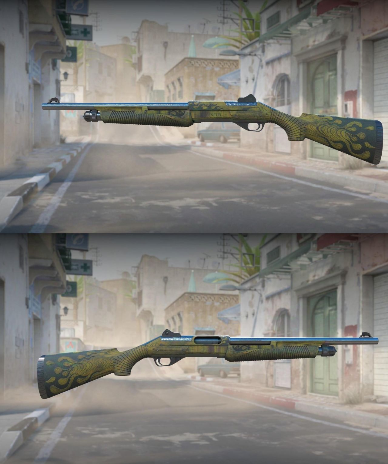 槍管金色,火焰蔓延至握把,嶄新和戰痕都別有一番風味。嶄新火焰偏黃,戰痕火焰偏紅,推薦略磨價格顏色剛剛好。