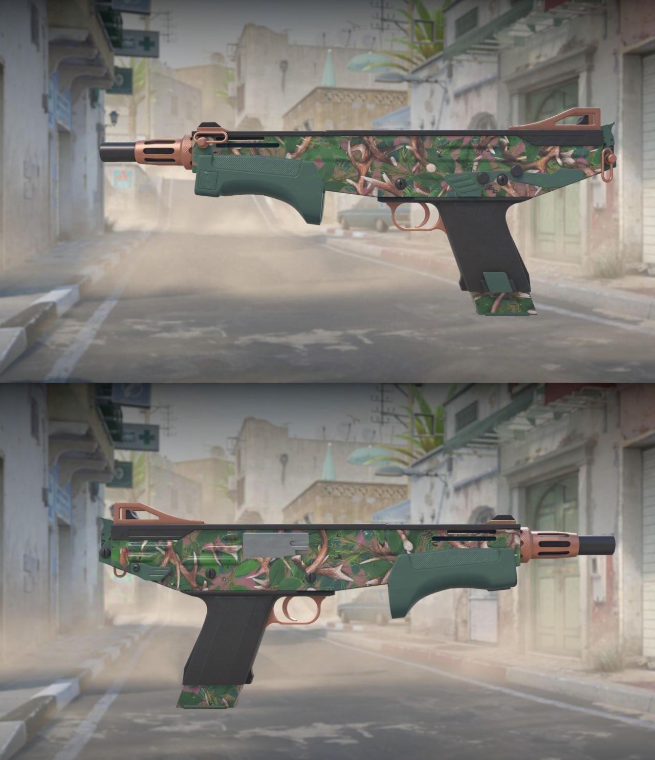 槍身淺綠色花朵手繪圖案,很亮很有質感,手感輕盈配綠色的貼紙很好看,磨損影響皮膚光澤,推薦嶄新。