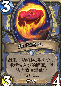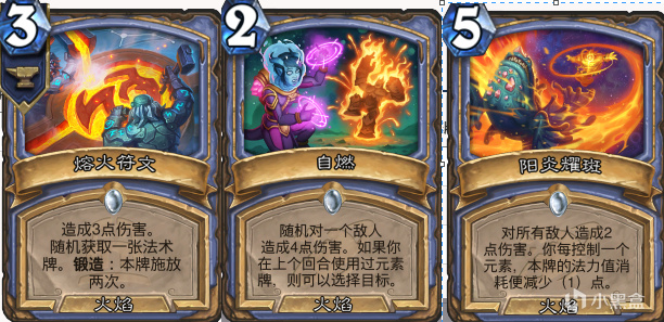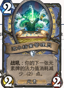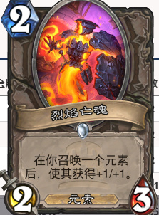 先說寒酸版元素法,勝率要比元素薩低,優點在於可以用元素混合快速補牌,以及溢流熔岩鋪滿場(最快五費滿場),遇到那種死命召喚大爹(輪盤術)的也可以用滑冰疊甲苟住然後雙燃燈斬殺,總結:不錯但不如元素薩。