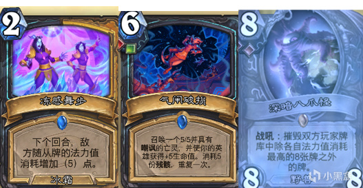 當然元素法並非沒有天敵,最怕的就是DK。只需要在4、5費時找到並打出一張凍感舞步70%老練的元素法都會在三秒內投降,而後如果再在六費時補一張氣閘破損+10點血,這時候要是對面是元素法還沒跑路的話相信我兄弟,你直接點舉報就是了這不是腳本我喫好吧。更有病態者會去帶深暗八爪怪,這張卡直接能給我們庫牌上到【恆星之火薩魯恩】下到沒有抽上手的燃燈全部圖圖,可以說是全方位抓元素法的職業,當然如果碰上大法術法就不好使了。