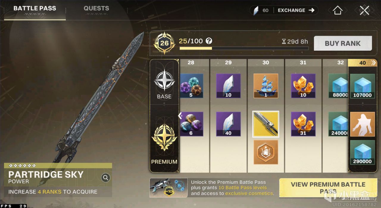 這裏需要注意的是大月卡(高級戰鬥通行證)中帶一把賽季異域武器,類似於命運2的賽季金槍,但是不購買高級通行證是無法獲取的。