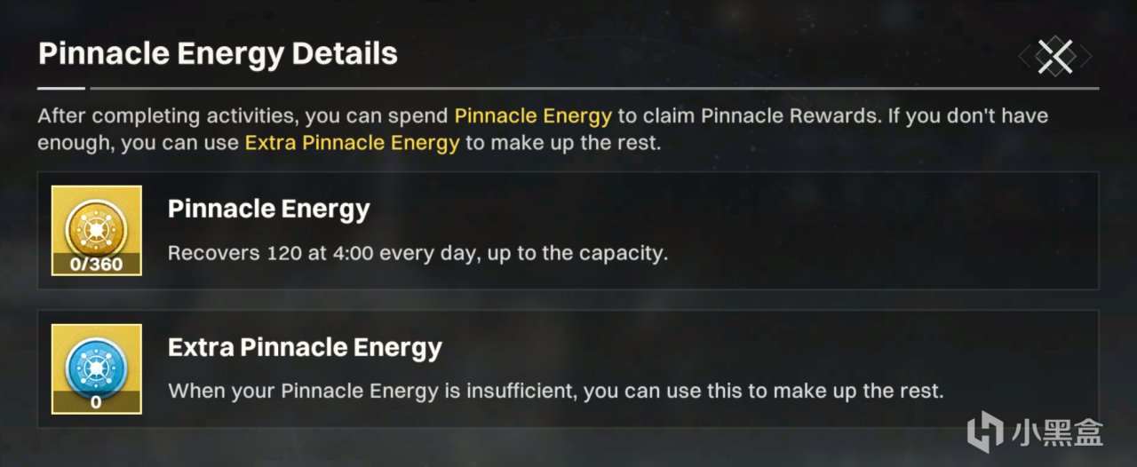 巔峯能量不像米哈遊一樣隨時間緩慢恢復,每天統一恢復120點(開服自帶360點),也就是說每天可以開啓6個巔峯獎勵。