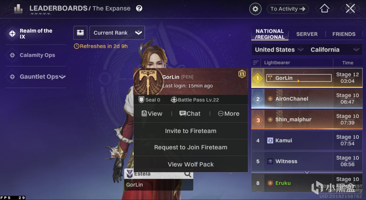 是的,你在圖上看到的是開服前幾天“蒼穹浩瀚“的美國加州排名,GorLin同學曾經排第一……那麼氪金點自然而言就來了,直白一點,pay to win,雖然內測期間並不包含氪金的部分,但是你可以想象得到,一旦開放氪金,在同等水平下,肯定氪金越多的玩家就越容易考前,很簡單的道理。Raid也是一樣,打完之後結算,你一個四星角色傷害150萬,隊友五星龍女400萬,那麼可能部分玩家就扛不住要648一把了。甚至在最普通的活動比如打擊中,結算界面也會看到,你對BOSS的傷害是全隊平均值多少……