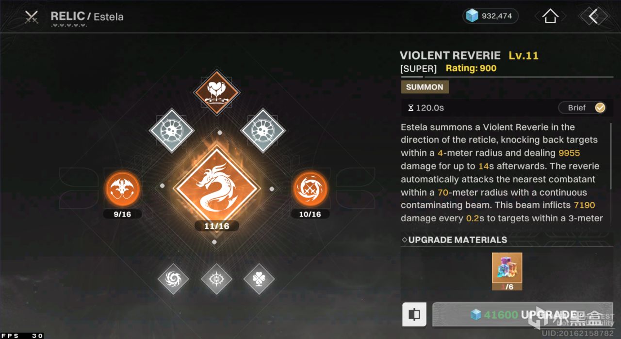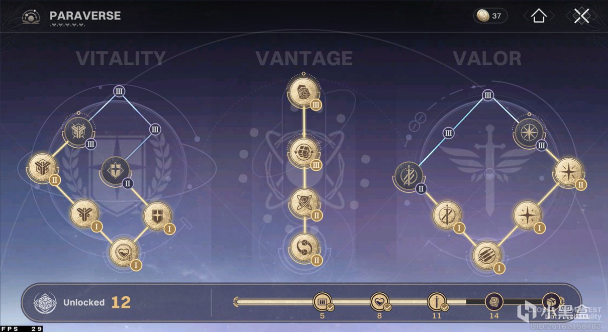 類似於米哈遊,角色升級等級、提高等級上限、升級角色技能(遊戲內稱之爲Relic 遺物)都需要消耗各種材料,而這些材料需要通過完成遊戲中的各種活動消耗體力開寶箱來獲取,但是不會有什麼明顯障礙,只要多花幾天時間等級、技能就能基本升滿。更多被動技能在提升角色階級(等級上限)的時候會解鎖。