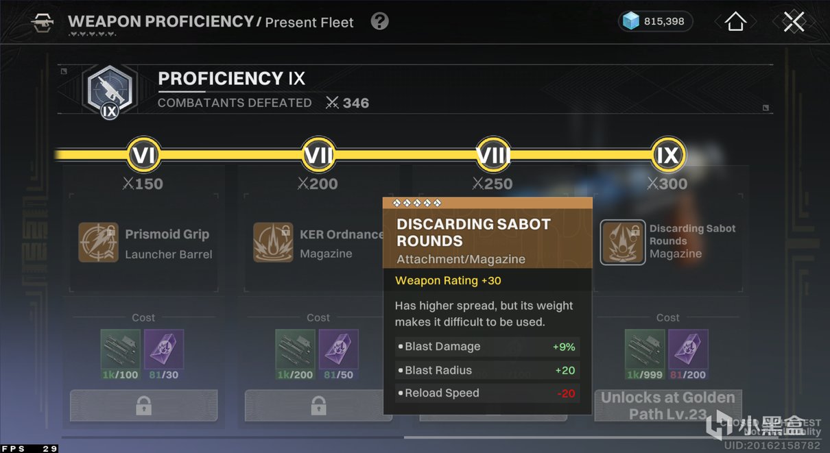 武器框架和一號位、二號位(槍管、彈匣)一旦通過專精等級解鎖後是可以任意切換的,三號位和四號位(perk)每次roll出武器後是隨機roll的不能更換,整體系統類似於目前命運2最新版本的系統。